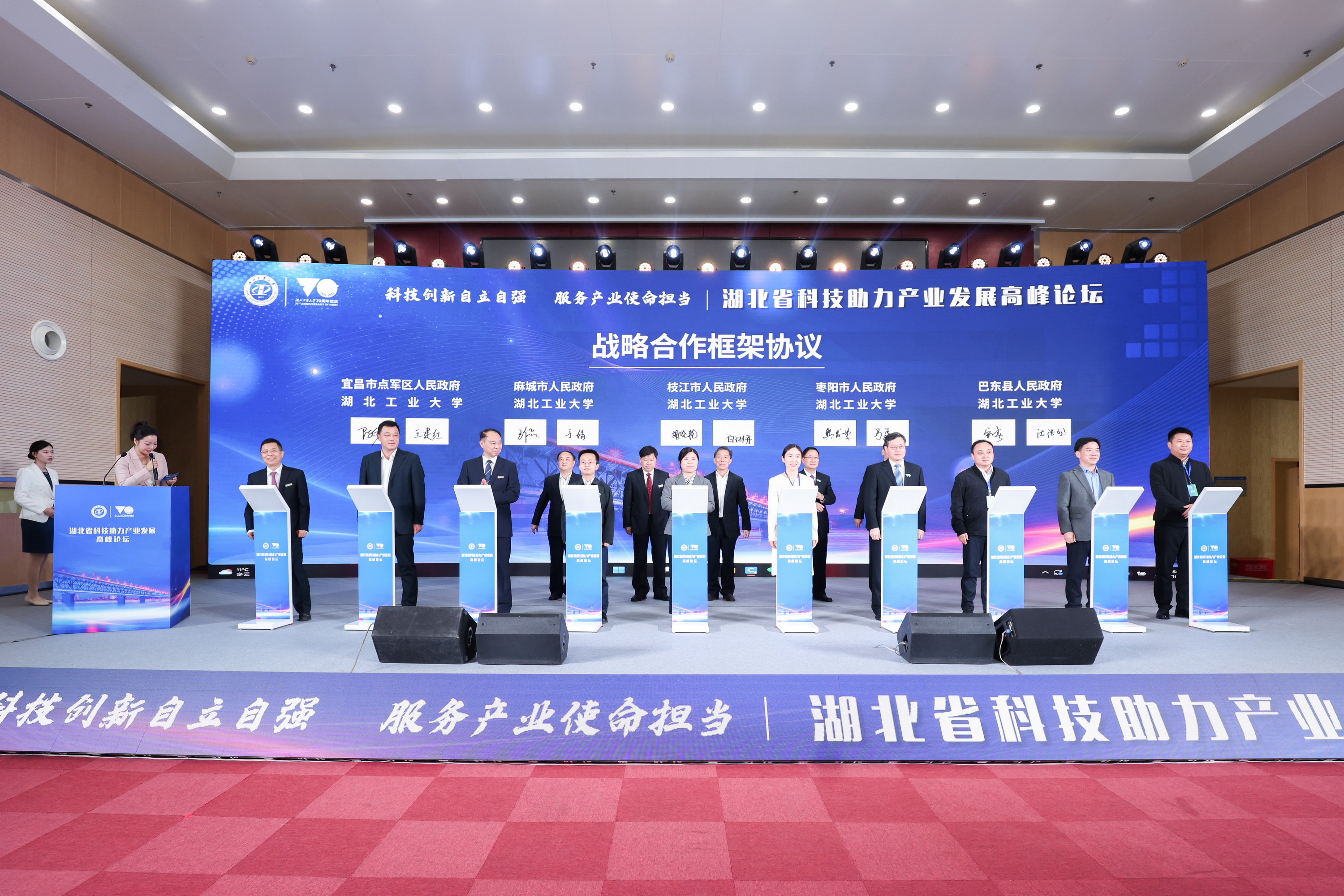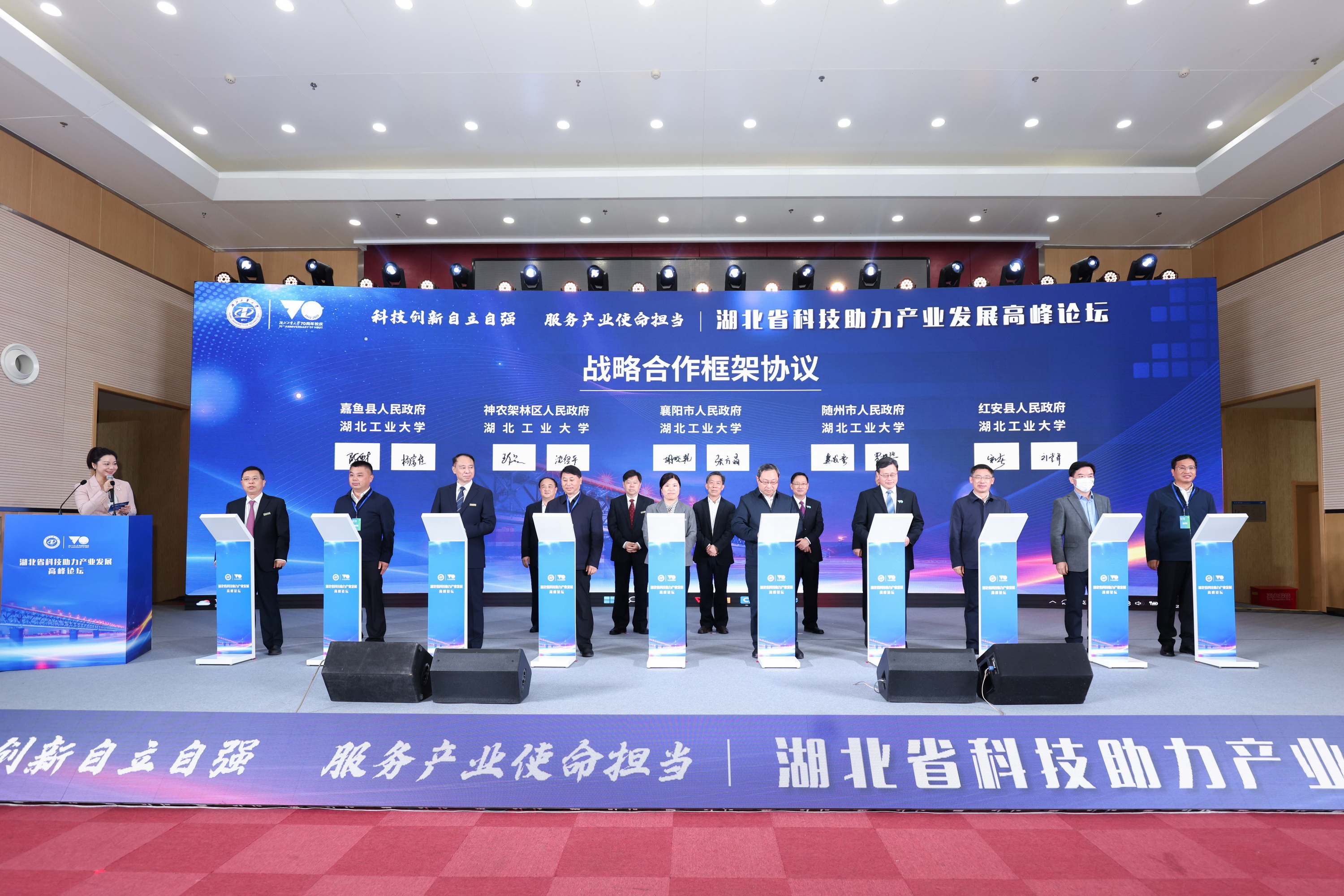 论坛上,学校共与10个地市签订框架协议,与15家代表性企业签订了技术合同。来自襄阳、黄石、随州、神农架、枝江、枣阳、麻城、红安、嘉鱼、巴东、宜昌市点军区等地的政府代表,以及武重、中建三局、中铁科工、国网湖北电力、安琪酵母、良品铺子、共同药业等企业负责人分5轮走上主席台,与湖北工业大学成功签约。
