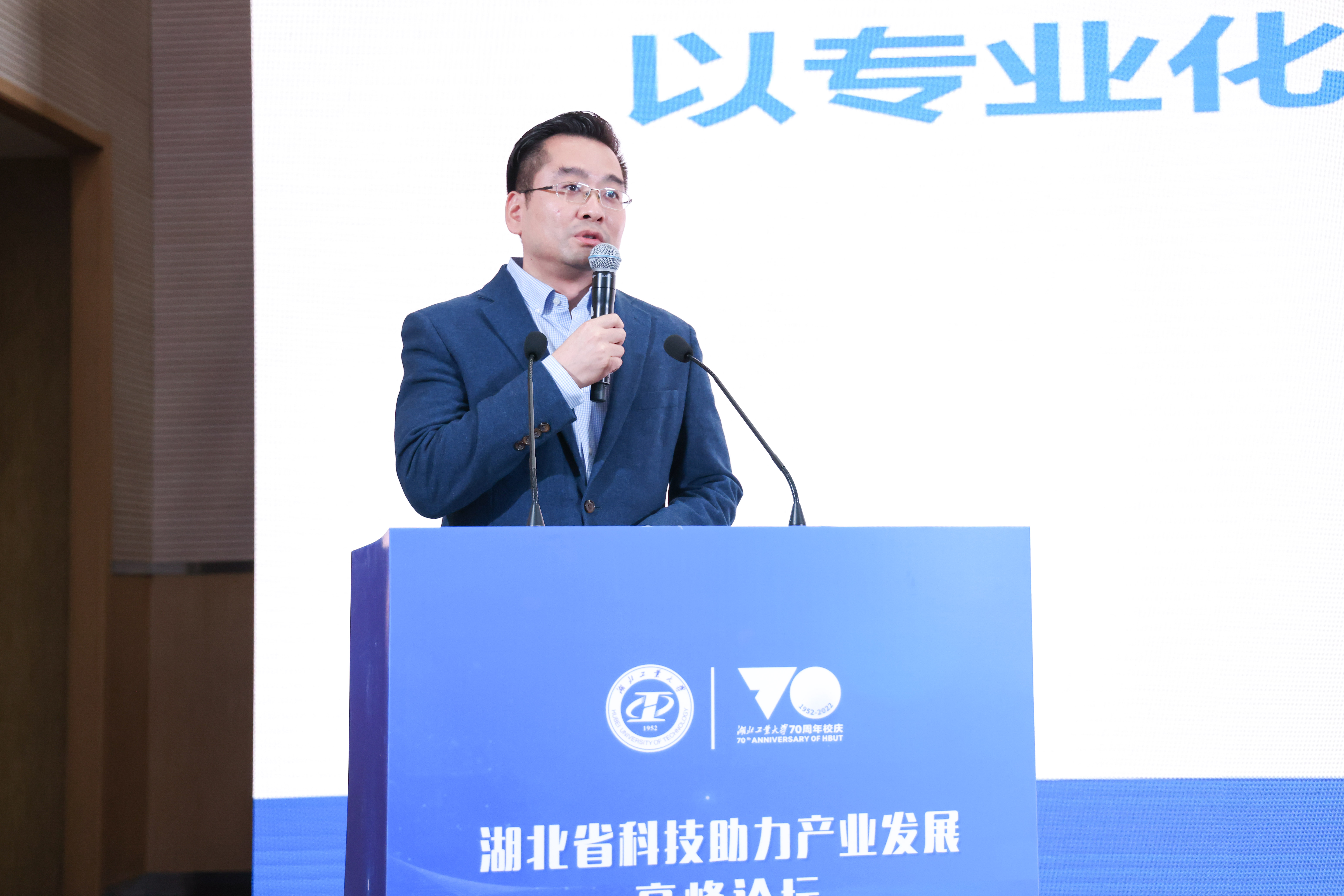 湖北省科技厅二级巡视员杨幺明讲话。湖北工业大学作为省属重点建设高校,在新能源、智能制造、生物医药、新材料、生态环境等领域产出了一大批标志性科技成果,特别是湖工大“科技成果接地气、专家教授接地气”,形成了可以借鉴和学习的“湖工做法”和“湖工经验”,在服务湖北企业、支撑产业发展上得到了各方面充分的肯定。