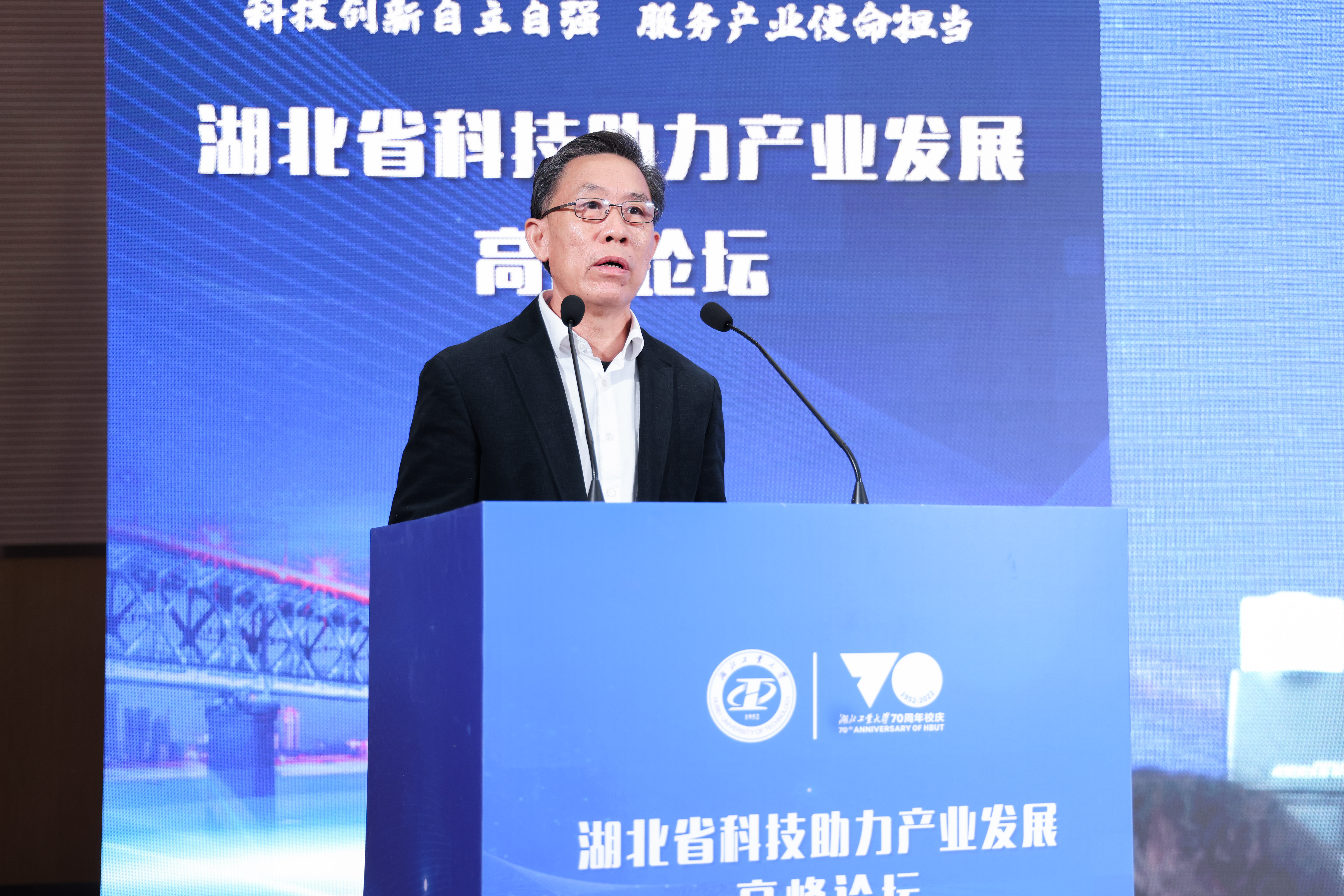 湖北省政协副主席郭跃进讲话。郭跃进强调,要把科教资源优势转化为人才优势、创新优势、产业优势和发展优势。他指出,科技强国以经济大国、经济强国为基础,科技创新要经济基础支撑和保障。湖北是科教大省,高校要担负起湖北建设全国构建新发展格局先行区的重任,研发关键技术、关键设备、关键材料,服务产业创新和发展,助力高水平科技自立自强;要将科技创新促进产业发展视为推动高校提升教学水平、促进人才培养的重要途径,将服务经济、服务产业与学科发展结合起来,积极开展理论研究、技术研究、应用研究;要面向国家重大战略需求,加快推进前沿基础研究和技术开发,提升科技原始创新能力,提升科研成果的针对性,解决实际应用问题;不仅关注企业当前效率的改进和提升,还要关注未来技术的应用、前沿产品的开发以及新产品的应用研究。