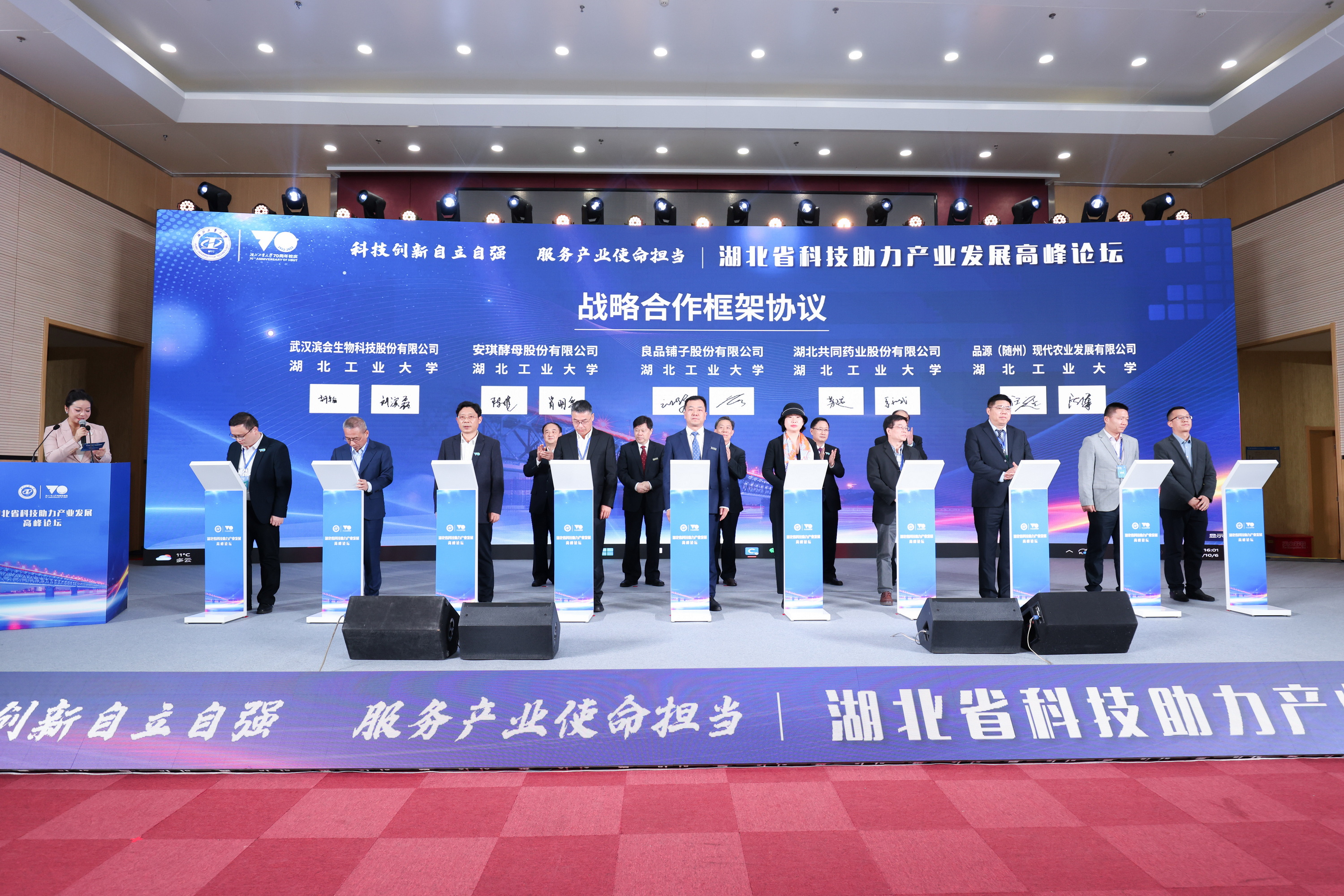 10月6日,湖北工业大学70周年校庆日当天,湖北省科技助力产业发展高峰论坛在学校图书馆一楼报告厅举行。本论坛由湖北省科技厅、湖北省教育厅、湖北工业大学、湖北广播电视台共同主办,由发酵工程教育部重点实验室、教育部工业发酵省部共建协同创新中心、绿色轻工材料湖北省重点实验室、工业微生物湖北省重点实验室等共同承办。湖北省政协副主席郭跃进出席并讲话。校党委书记刘德富致辞。校长彭育园主持开幕式。