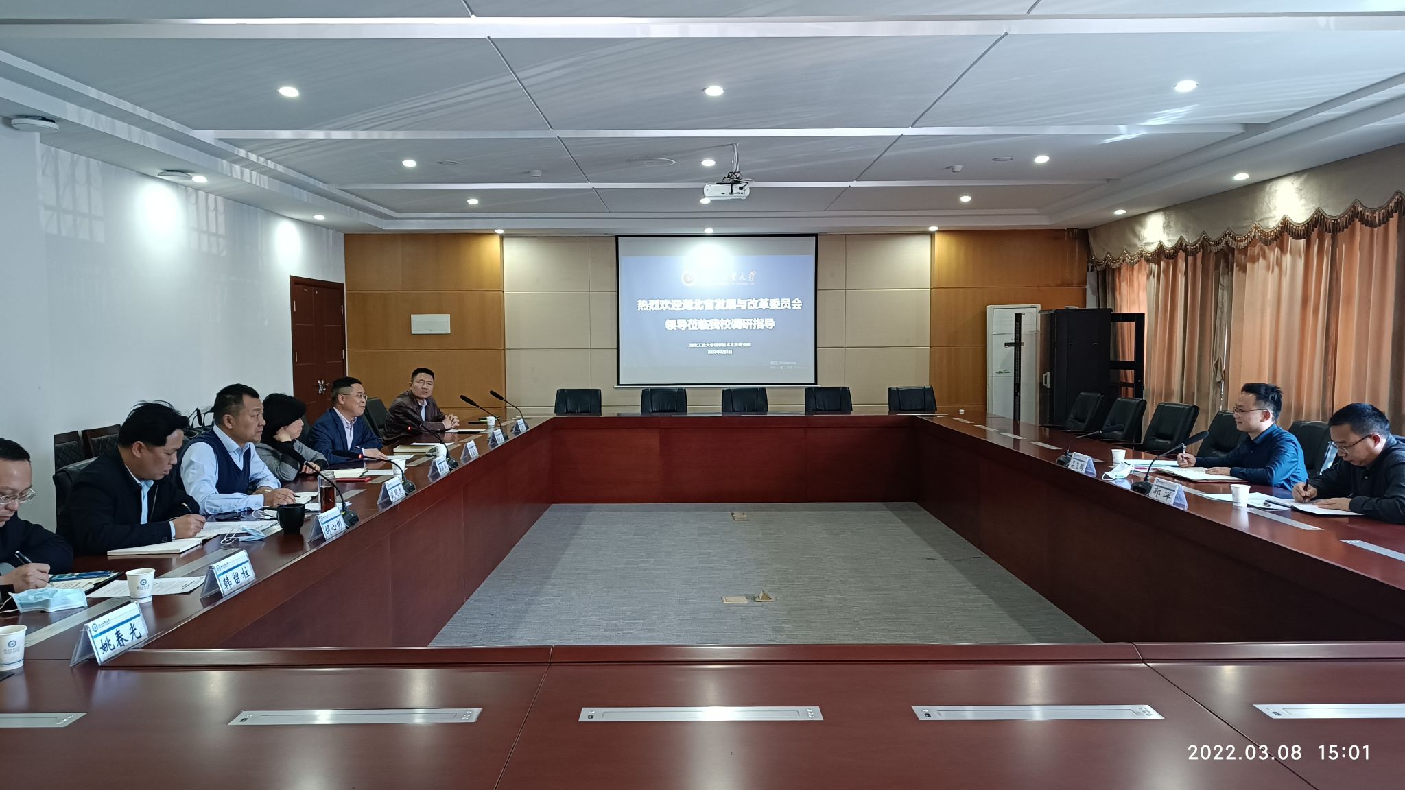 郭洋介绍了发改委系统科研平台的现状及“十四五”科研平台建设规划,强调学校科研平台建设要思考如何承担“卡脖子”技术攻关,如何对接湖北“51020”现代产业体系发展战略布局,服务湖北高质量发展;吴飞鹏表示湖北工业大学科研平台建设情况体现了学校对平台建设的高度重视和坚决提升突破的决心,发改委积极支持并相信湖工科研平台建设能取得更大成绩。