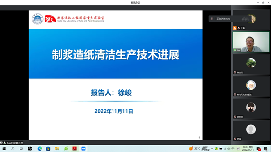 11月11日上午,华南理工大学轻工科学与工程学院徐峻教授为重点实验室师生作了题为“制浆造纸清洁生产技术进展”的学术报告。报告由王鹏教授主持,采取线上会议的方式进行。此次报告为“学术校庆·百场学术论坛”系列讲座活动之一。