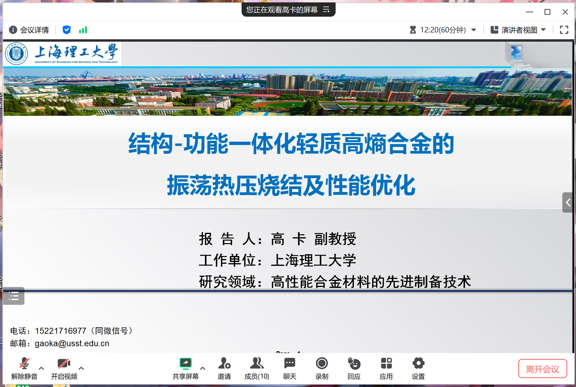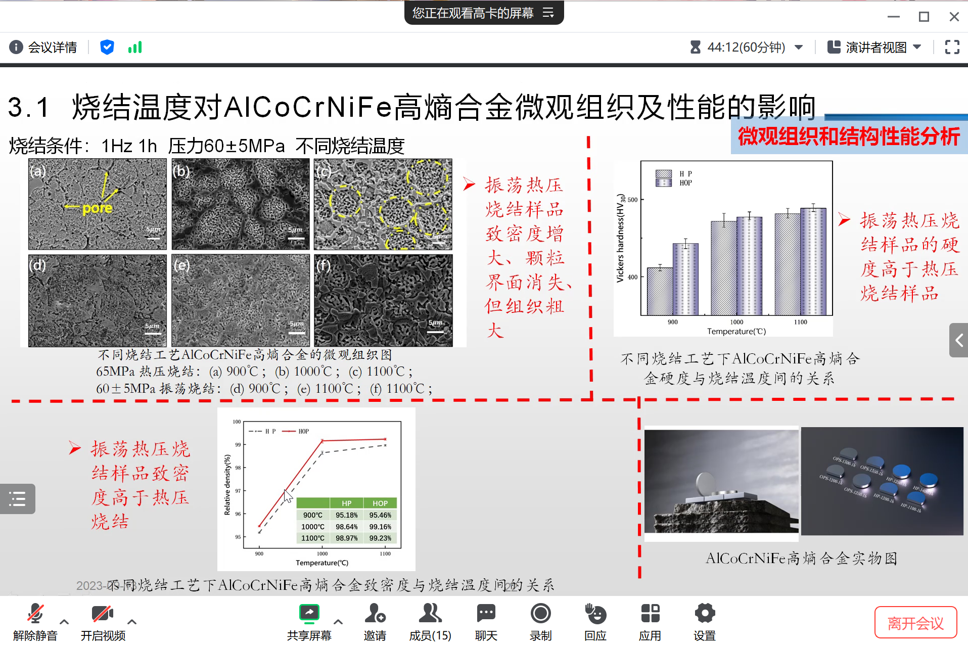 9月13日下午19:00,绿色轻工材料湖北省重点实验室邀请了高卡老师为学院师生作了题为“结构-功能一体化轻质高熵合金的振荡热压烧结及性能优化”的学术讲座。报告采取线上会议的方式进行,材化学院相关专业的教师和学生代表参加了此次学术报告。