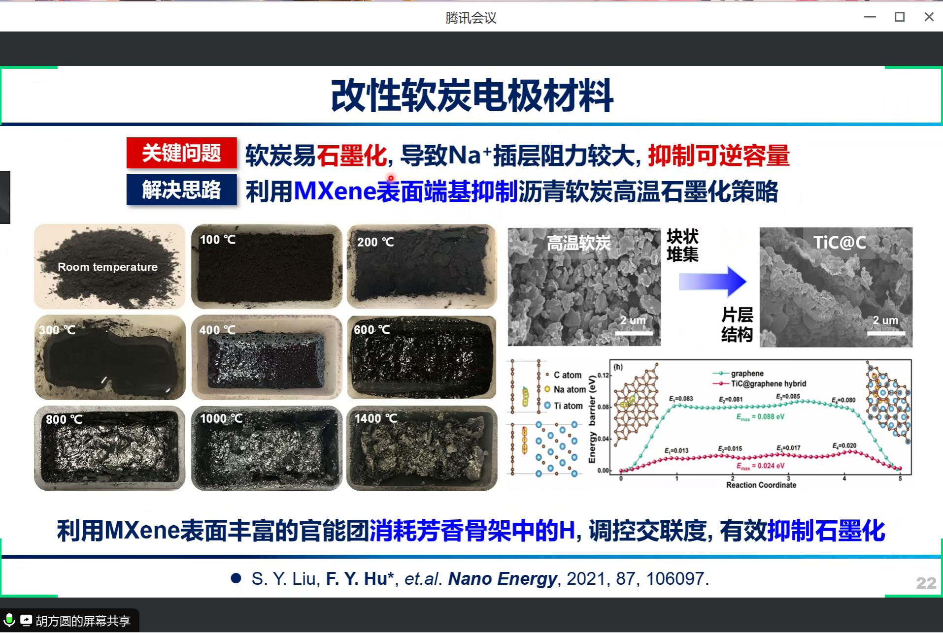 胡方圆教授首先介绍了新能源的研究背景。新型杂环高性能聚合物富含芳杂环结构,是一类非常重要的高分子材料,不仅在各种高性能结构材料与复合材料中应用广泛,而且也是各种碳基结构与功能材料的重要前驱体。由于材料的微观结构会决定宏观电化学性能,因此,如何在分子层次对材料的微观结构进行设计至关重要。本次报告从分子设计出发,设计合成系列含二氮杂萘酮结构的单体,在特定条件下聚合制得含多种杂原子均匀分布的多孔高分子基材料。围绕该类新型刚性芳杂环高性能高分子材料的结构调节与控制,研究这类材料的电化学行为以及作为电极材料在储能器件中的应用。简要分析总结了该类刚性芳杂环高分子基电极材料在钠离子电容器、锂硫电池、钠离子电池等领域的应用及发展前景,亦为新型高性能电极材料的设计与可控制备提供了一些可资借鉴的新思路。