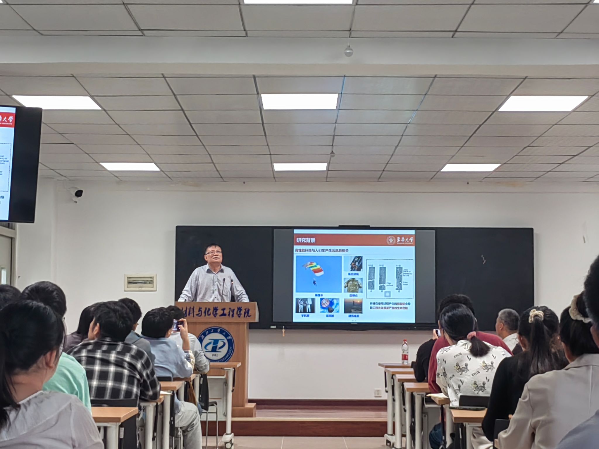 武培怡教授首先介绍了自己所在团队的研究方向和取得的研究成果,然后介绍了智能响应多级结构纤维特点及应用,高性能纤维与人们生产生活息息相关,纤维在使用过程中产生的微颗粒会导致工程失效甚至更严重的生命危险,重点介绍了课题组在水相纺丝方面取得的最新研究成果,受蜘蛛纺丝的启发,引入了一种简单、高效的水相纺丝工艺,所得到的微纤维不仅对裂纹不敏感,而且可以快速愈合。由于其独特的纳米约束结构,展现了高度的能量耗散性和湿敏性,但在水中稳定,具有优异的阻尼和超收缩性能。该报告扩大师生视野,报告进行了互动交流,报告结束后,在座师生就水相纺丝工艺、纤维性能等相关问题与武培怡教授进行了深入交流,进一步营造了学院学术氛围。