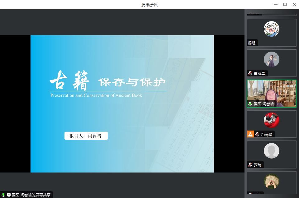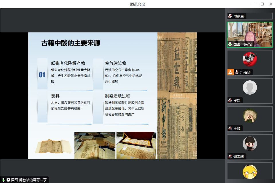 11 月1日下午18:00,绿色轻工材料湖北省重点实验室邀请了闫智培老师为学院师生作了题为“古籍的保存与保护”的学术讲座。报告采取线上会议的方式进行,材化学院相关专业的教师和学生代表参加了此次学术报告。