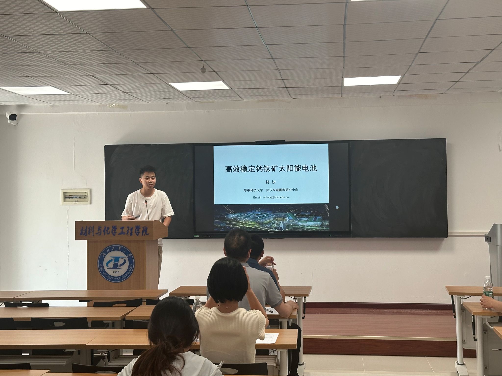 6月13日下午15:00,绿色轻工材料湖北省重点实验室邀请了陈锐博士为学院师生作了题为“高效稳定钙钛矿太阳能电池”的学术讲座。报告在生化楼H424会议室进行,材化学院相关专业的教师和学生代表参加了此次学术报告。