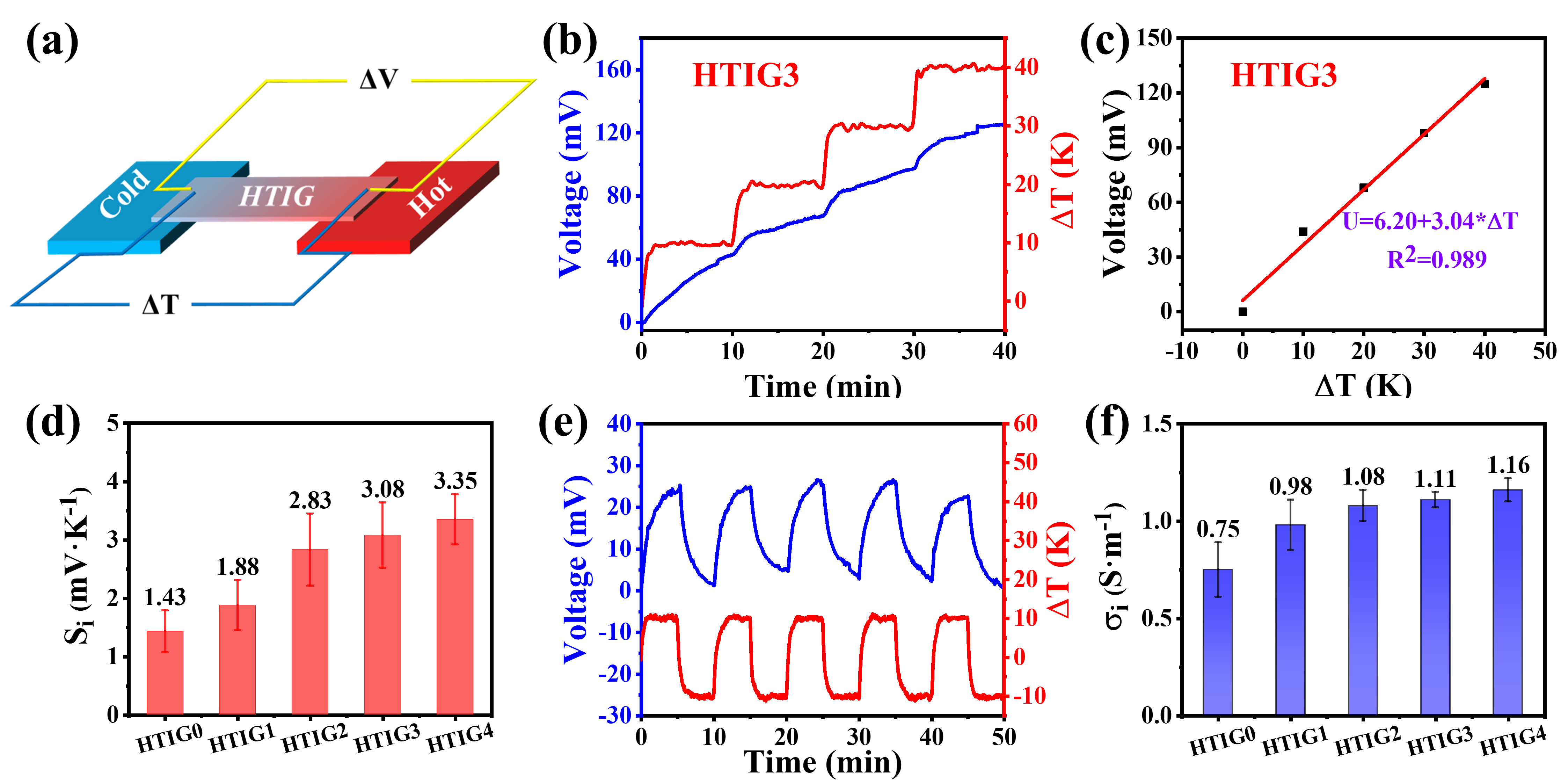 图3 智能防火离子水凝胶的离子热电性能(图片来源:Journal of Materials Chemistry A)