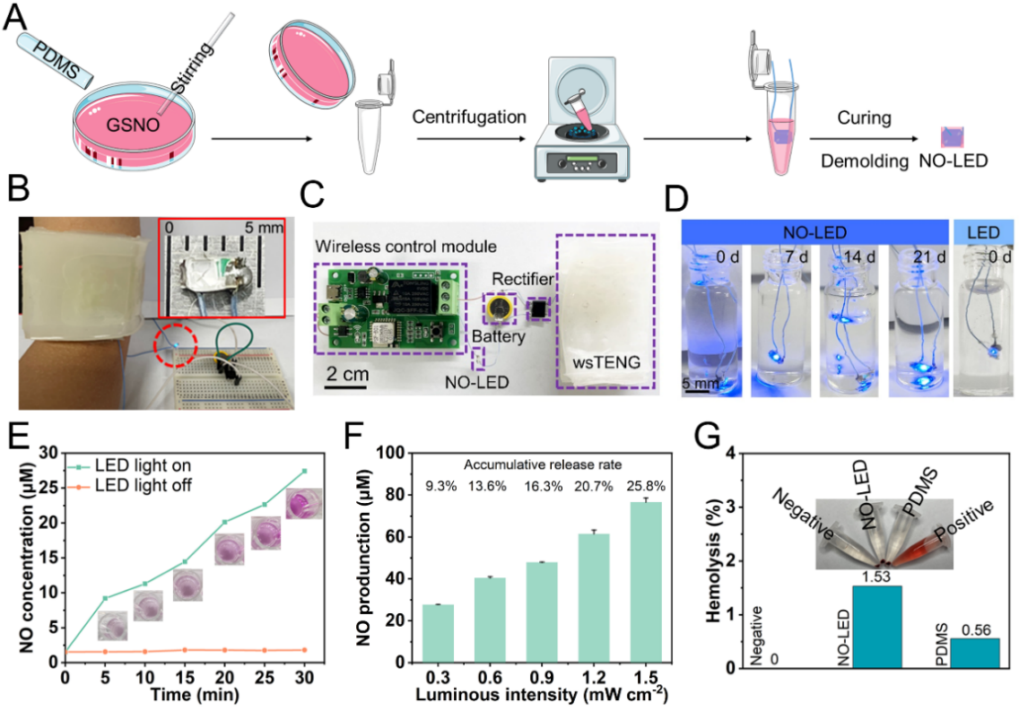 图二. NO-LED的制备和NO释放性能