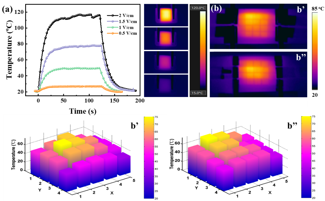 此外,基于石墨烯优异的电热性能,该团队还提出通过组合不同的电阻区域来设计图案化加热器,其中每个加热单元的电热性能可以通过调整激光参数进行定制。这为模拟电子设备中非均匀热源的真实情况提供了独特的机会,将有助于散热系统的设计和开发。以上证实了图案化石墨烯复合材料在热管理领域巨大的应用潜力。同时,基于局部、可控的优势,这种激光加工制造工艺也为多功能结构一体化复合材料的设计和制备开辟了一条途径。