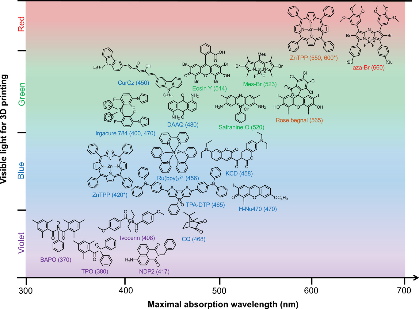 图1.代表性可见光3D打印光引发剂