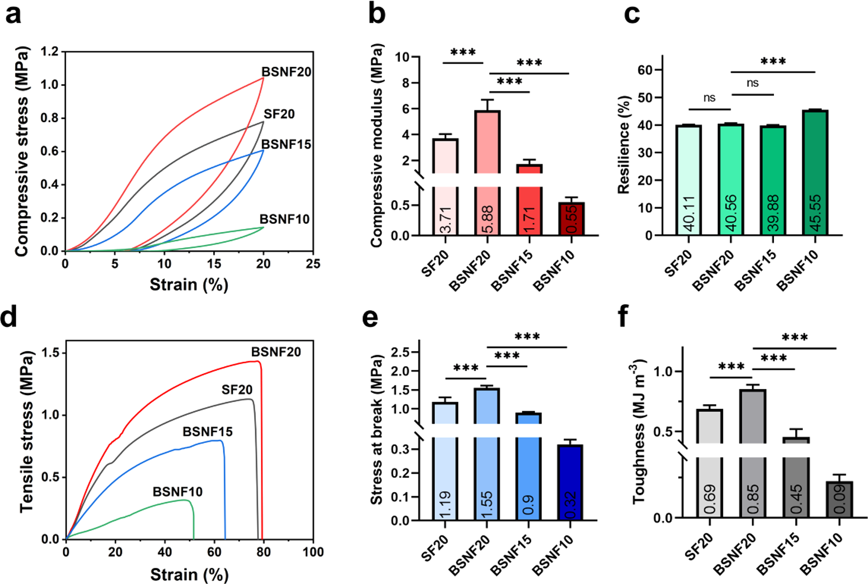 图2 高强度丝蛋白纳米纤维水凝胶的表征