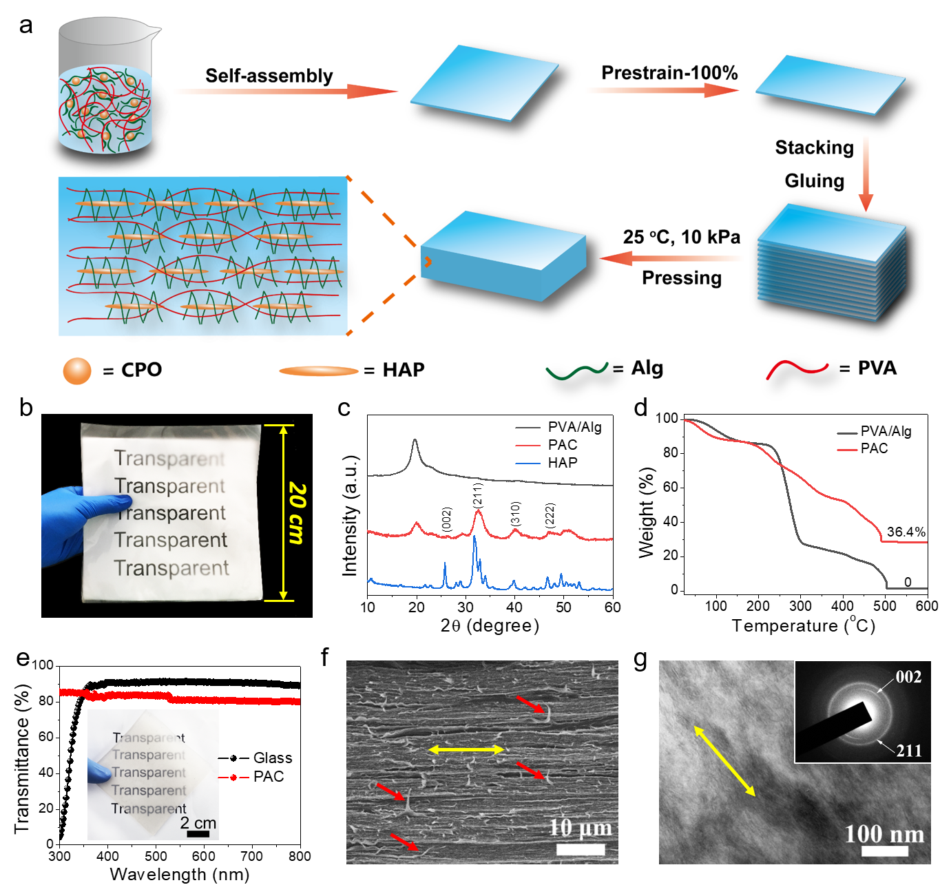 图1. 通过简单的三步走策略(组装-取向-交联)制备PAC层状复合材料及其结构表征。
