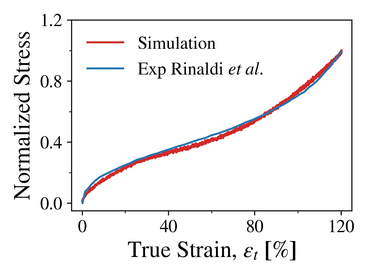 图 2. 模拟与实验得到的聚脲应力应变曲线