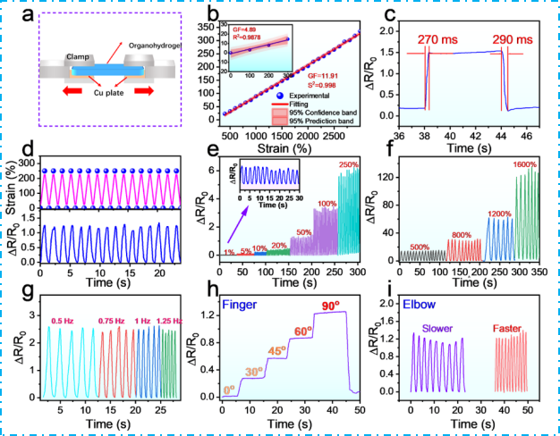 图3. PAM/PVA/MXene复合有机水凝胶(极端环境下)对人体运动的感知能力
