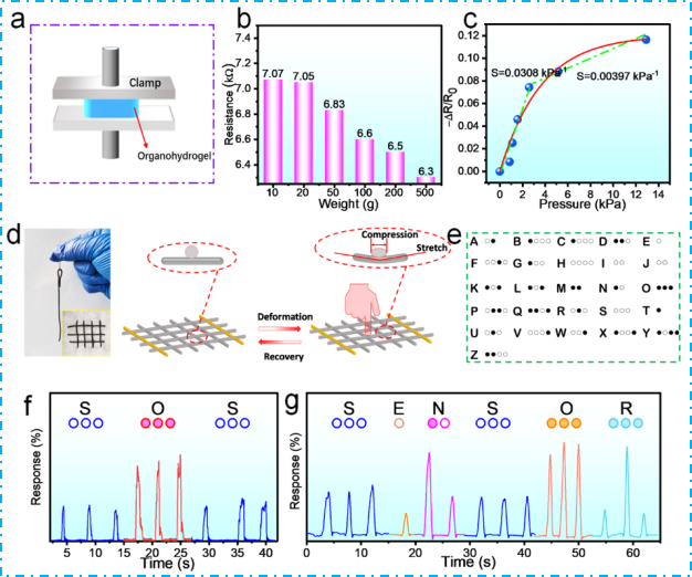 图4. PAM/PVA/MXene复合有机水凝胶的压力传感能力(摩斯编码)
