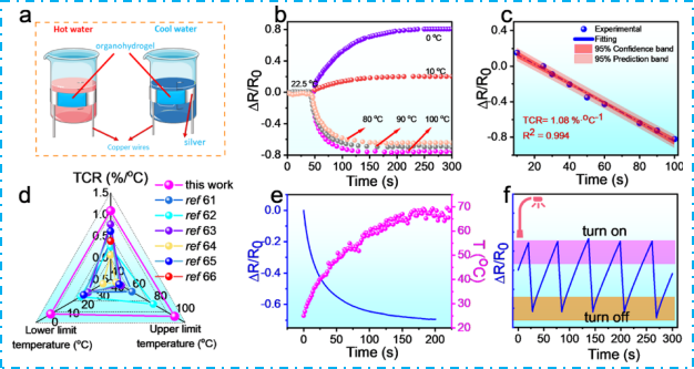 图5. PAM/PVA/MXene复合有机水凝胶的热感知能力