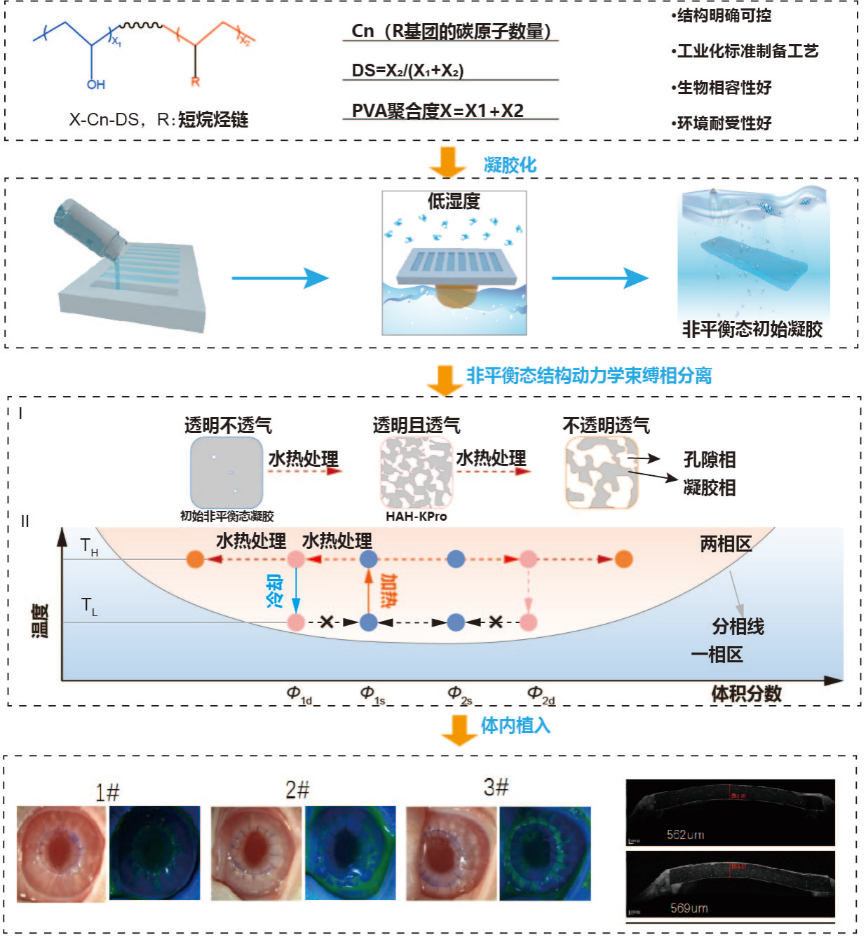 图2. 基于短烷烃链改性聚乙烯醇的人工角膜及其