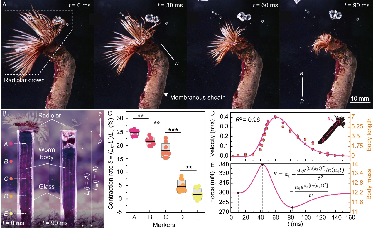 相关工作以Membranous sheath of a fan worm functions as a high-performance energy absorber and stabilizer为题,发表于Cell旗下物质科学期刊 Cell Reports Physical Science 上。中山大学本科生白嗣愉为论文第一作者,伯明翰大学Shi-Yang Tang教授和中山大学先进制造学院吴嘉宁副教授为共同通讯作者。