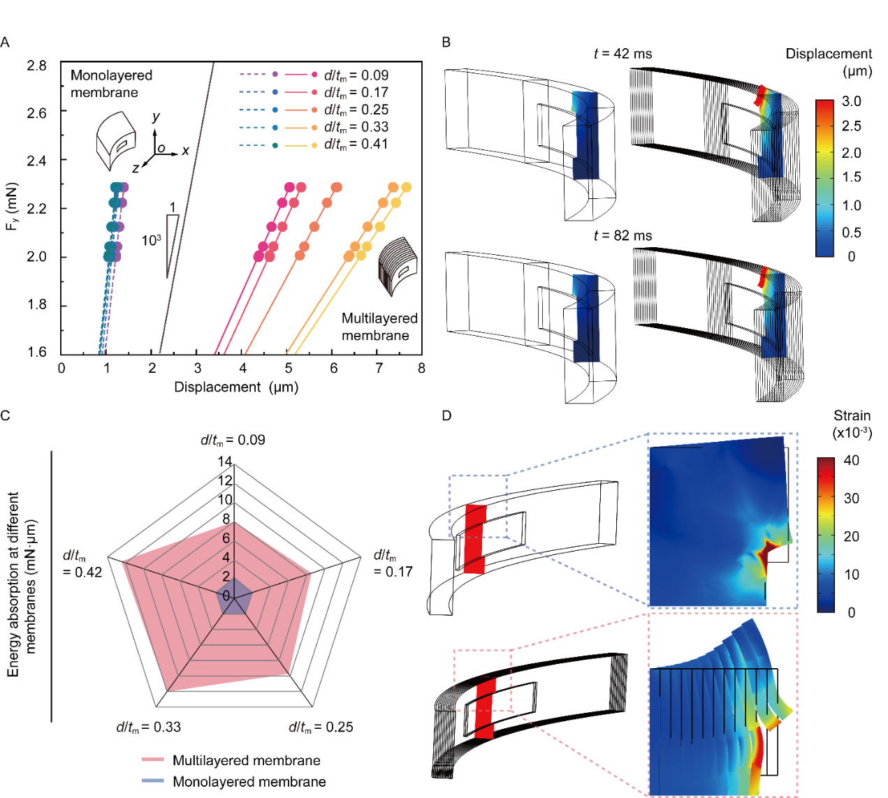多层结构通常具有高强度、高刚度和高能量吸收率的优点,已广泛运用于复合减震结构等工程领域。然而,大多数具有高能量吸收率的多层结构是用刚性材料制造的,这严重限制了它们在非结构化环境中的运用。