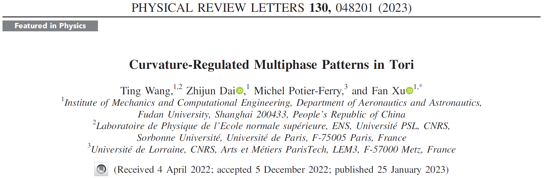 复旦大学航空航天系博士生汪婷是论文的第一作者,徐凡教授是论文的通讯作者,戴之峻是论文的合作者。法国洛林大学国家科学研究中心M. Potier-Ferry教授是论文的合作者。研究得到国家自然科学基金委、上海市基础研究特区计划、上海市教委和复旦大学等资助。复旦大学徐凡教授课题组长期招聘博士后和博士生(详见http://morphomech.com/position),欢迎有意者联系。