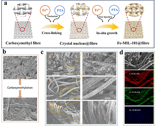 图1 一系列Fe-MIL-101@柔性纤维复合材料的制备