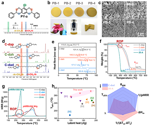 图2. 聚苯并噁嗪气凝胶、苯并噁嗪基PCM的结构/性能表征