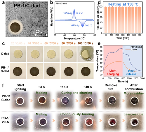 图3. 相变复合材料的储热性能、耐久性及阻燃性