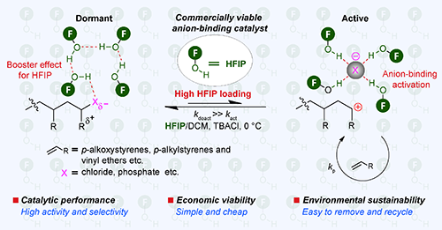 图1. 解锁HFIP作为一种实用的阴离子结合催化体系实现活性阳离子聚合。