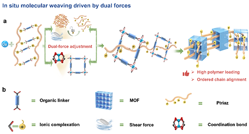 图1 双重作用力引发的分子编织构筑离子型聚合物–MOFs复合材料