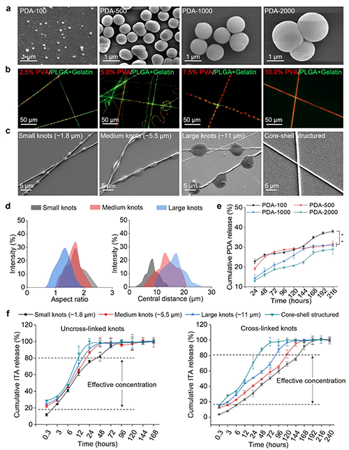 该贴片中的项链状纤维同时包载了聚多巴胺(PDA)和衣康酸(ITA)。通过优化纤维表面特性和PDA粒径,纤维贴片实现了ITA的可控释放和热刺激温度的准确调控。释放的ITA通过结合琥珀酸脱氢酶抑制活性氧生成,从代谢途径预防了复温后的再灌注损伤。局部热刺激可上调冻伤组织中热休克蛋白-90(HSP-90)和缺氧诱导因子-1α(HIF-1α)的表达,通过增强血管内皮生长因子(VEGF)的表达与稳定性,促进微循环重建和胶原沉积,最终加速组织修复(图2)。
