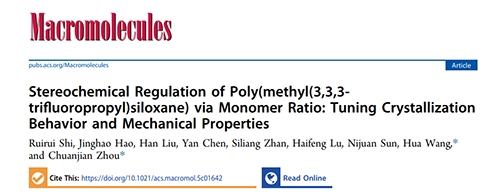 相关研究工作以“Stereochemical Regulation of Poly(methyl(3,3,3-trifluoropropyl)siloxane) via Monomer Ratio: Tuning Crystallization Behavior and Mechanical Properties”为题发表在《Macromolecules》上,论文第一作者是山东大学材料科学与工程学院博士研究生师睿睿,通讯作者为山东大学材料科学与工程学院的王华副研究员和周传健教授。该研究得到了山东省自然科学基金联合基金和山东省重点研发计划的资助。