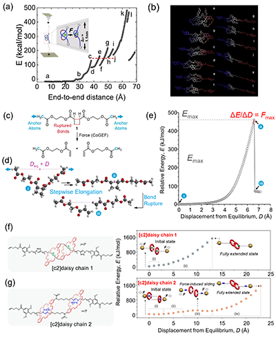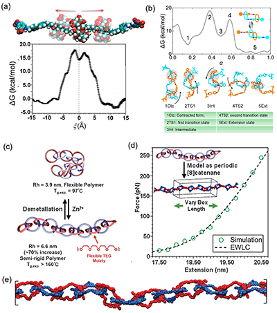 图3. 机械互锁分子和机械互锁聚合物的全原子分子动力学模拟。