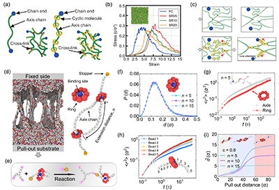 图4. 机械互锁聚合物网络的力学、动力学和环滑动特性。